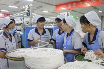 此次比賽共有三個項目:機前回捻、機后包接、機臺清潔,包接和清潔這兩個項目是恒新粗紗擋車工每天必須做的,只需強化一下動作要領(lǐng)即可。而機前回捻這個項目是日常工作中沒有接觸過的,此項操作在恒新粗紗不適用,粗紗機前斷頭的處理方法一直都執(zhí)行著機前壓頭,避免回捻不當(dāng)造成紗條的長粗長細(xì),以確保半制品質(zhì)量。為此股份公司生產(chǎn)技術(shù)部徐躍紅工程師多次協(xié)調(diào),并組織培訓(xùn)。為了讓運動員熟悉回捻這個項目的操作法,前紡車間特意指定一臺粗紗車專供練習(xí)回捻。起初運動員練回捻時6個頭要用到3分鐘以上,通過一段時間的練習(xí),大部分都提到了2分鐘左右。趙金彥,原是粗紗落紗工,由于工作需要,現(xiàn)在是氣流紡生產(chǎn)小組長,經(jīng)過勤學(xué)苦練進(jìn)步最快。甲班趙雪彥,一上崗被分到氣流紡轉(zhuǎn)杯紡,后來由于十萬錠工序人員緊張,她主動要求來十萬錠看粗紗,手快、能干,粗紗擴臺一直都是她的強項。恒新公司還有一名男選手,谷延昭各個工序都能操作,是前紡車間的多面手。在改車任務(wù)不忙的時候,他就默默地到比賽機臺上練習(xí),很用心,兩三下學(xué)會了回捻的操作。乙班的劇宏偉、趙曉敬等運動員也都不甘落后,下夜班后不回家練操作。